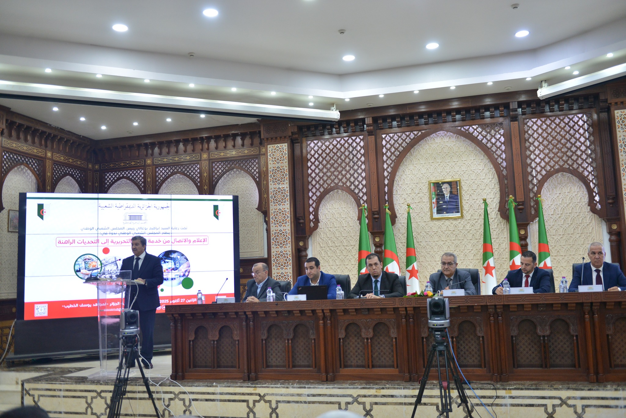 Le rôle des médias algériens a été au cœur d’un colloque organisé lundi à l’Assemblée populaire nationale, à l’occasion du 71e anniversaire du déclenchement de la Guerre de libération et du recouvrement de la souveraineté nationale sur la Radio et la Télévision algériennes. Les plus hautes autorités du pays ont réaffirmé le rôle stratégique de ces institutions dans la défense de l’identité nationale et face aux défis contemporains. Le président de l’APN, Brahim Boughali, a placé les médias nationaux au rang de « défenseurs de la mémoire, de la souveraineté et de l’identité », soulignant leur mission de « passerelle pour la cohésion nationale » et de « rempart de défense de l’image de l’Algérie ». Revenant sur le rôle historique de la presse durant la Révolution, il a rappelé qu’elle a constitué « une arme efficace au service de la nation » avec « une parole sincère et une voix libre qui dénonçaient les crimes du colonialisme et unissaient le peuple autour de l’idéal d’indépendance ». À cette époque glorieuse, a-t-il souligné, « la parole n’était pas une simple information, mais un appel à la patrie, un écho de l’héroïsme et un message d’espoir ». Évoquant la date symbolique du 28 octobre 1962, M. Boughali a qualifié le recouvrement de la souveraineté sur la Radio et la Télévision de « moment décisif dans l’histoire des médias algériens, témoignant de la capacité des Algériens à bâtir un média libre, au service du pays et de la mémoire collective ». Après l’indépendance, les médias ont accompagné les étapes de construction nationale, devenant « une tribune pour la construction et l’édification, contribuant à ancrer l’identité et défendre les valeurs de la nation ». Face aux enjeux actuels, le président de l’APN a appelé à « moderniser le paysage médiatique national, afin d’accompagner la révolution numérique et faire face aux campagnes de désinformation », insistant sur la nécessité de « concilier la liberté d’expression et la responsabilité professionnelle ». Il a également salué les efforts de l’Armée nationale populaire, convaincu que « la défense du territoire passe également par la protection des données, la maîtrise de la cybersécurité et le développement des capacités technologiques ».