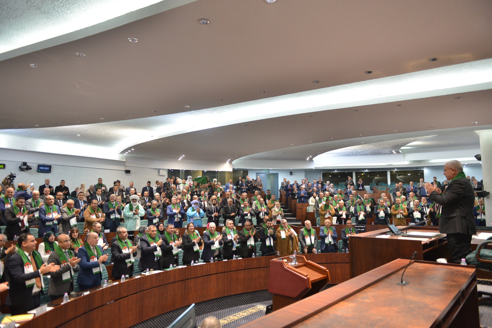 L’hémicycle de l’immeuble Zighoud-Youcef a connu une ambiance exceptionnelle marquant cet événement à forte portée symbolique. Paré aux couleurs de l’emblème national, ce lieu est resté le témoin d’une journée charnière dans l’histoire contemporaine de la législation algérienne. Les représentants du peuple ont entonné d’une seule voix les slogans patriotiques, scandant notamment « Tahya El Djazaïr » et « Djeïch, Chaâb, khawa khawa », ainsi que « Watani watani ghali thamani », dans une atmosphère empreinte d’émotion et de fierté nationale.
