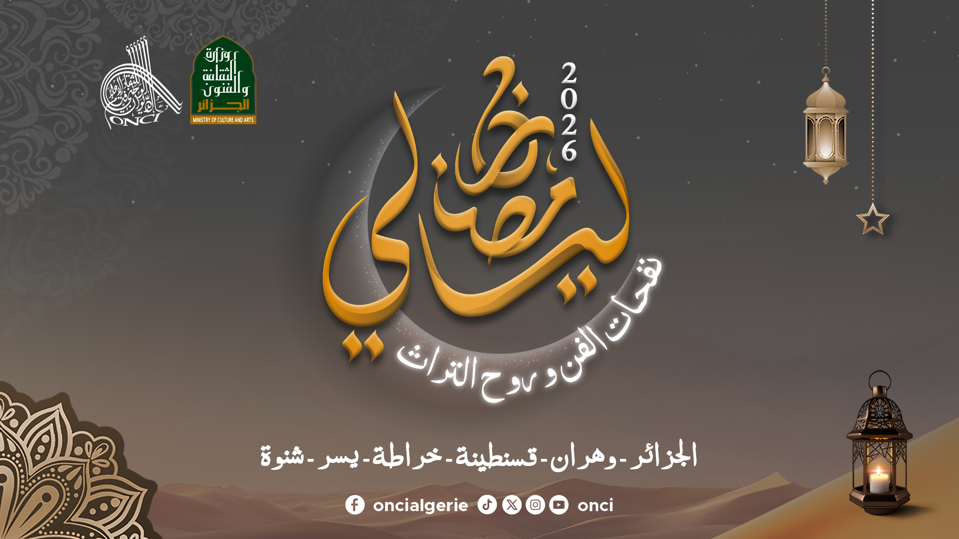 L’Office national de la culture et de l’information (ONIC) a dévoilé un programme culturel et artistique varié à l’occasion du mois de Ramadhan, comprenant des soirées musicales dans différents genres, des représentations théâtrales ainsi que des concours de mémorisation du Saint Coran, qui seront organisés à travers ses divers espaces sur l’ensemble du territoire national, selon un communiqué de l’Office publié lundi.Ce programme artistique intitulé « Nuits de Ramadan », organisé cette année sous le thème « Les souffles de l’art et l’esprit du patrimoine », vise à animer les soirées du mois sacré de Ramadhan à travers l’organisation de soirées artistiques qui conjuguent authenticité et modernité, mettant en valeur la diversité et la richesse du patrimoine culturel algérien, en harmonie avec la spiritualité du mois béni. Le programme débutera le 25 février à 22 heures et se poursuivra jusqu’au 15 mars prochain, selon les organisateurs.