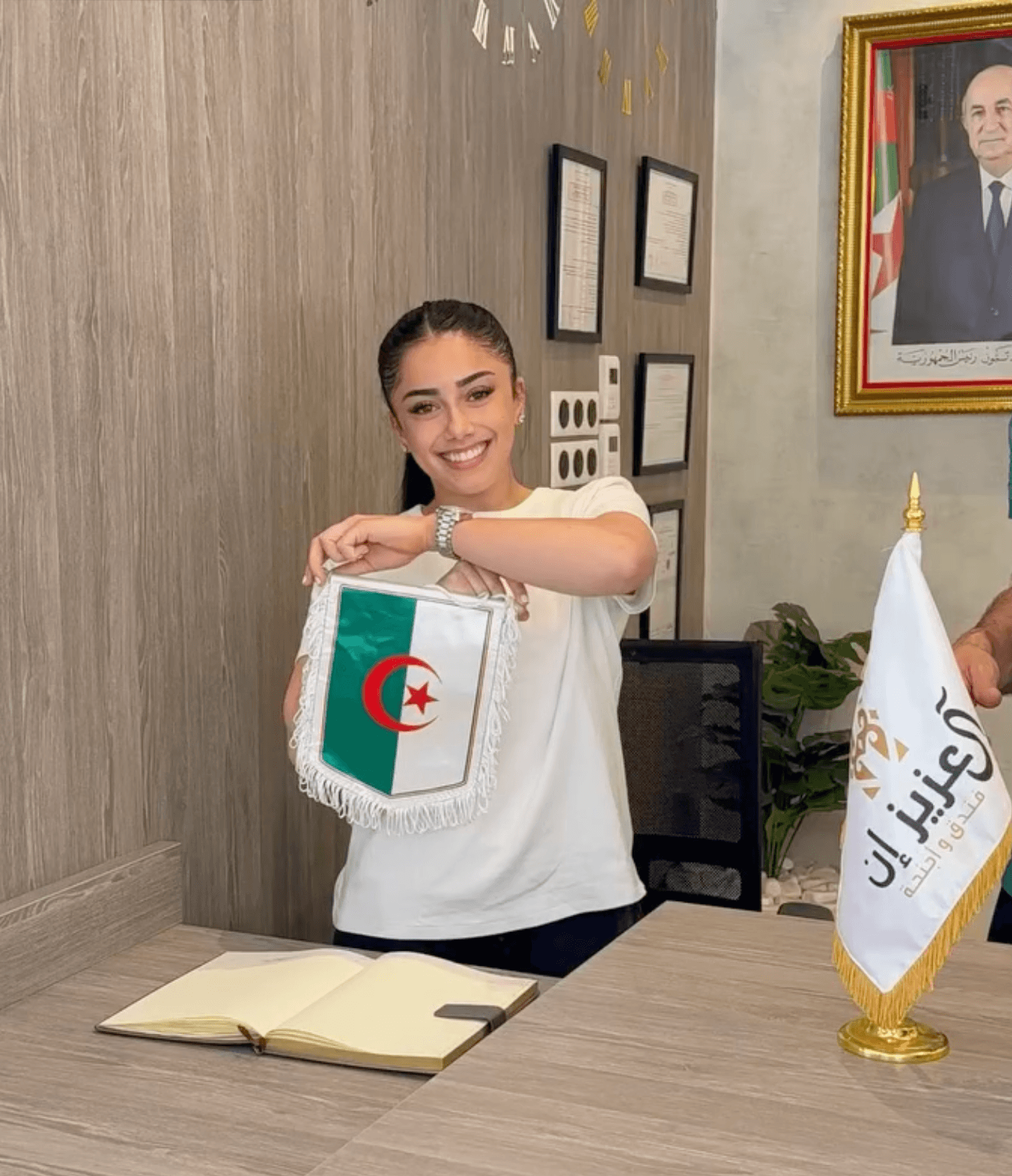 Et pour cause : le palmarès de Djenna Laroui est celui d’une gymnaste complète et accomplie. Championne de France du concours général individuel en 2023, elle a décroché une médaille d’argent aux Jeux méditerranéens d’Oran cette même année — sur le sol algérien, fait notable —, une médaille de bronze au concours général par équipes aux Mondiaux d’Anvers en 2023, et une autre de bronze par équipes aux championnats d’Europe de Leipzig en 2025. Polyvalente, elle s’est illustrée aux barres asymétriques, au saut, au sol et au concours général individuel, faisant d’elle un renfort de poids pour une équipe algérienne en pleine ascension.